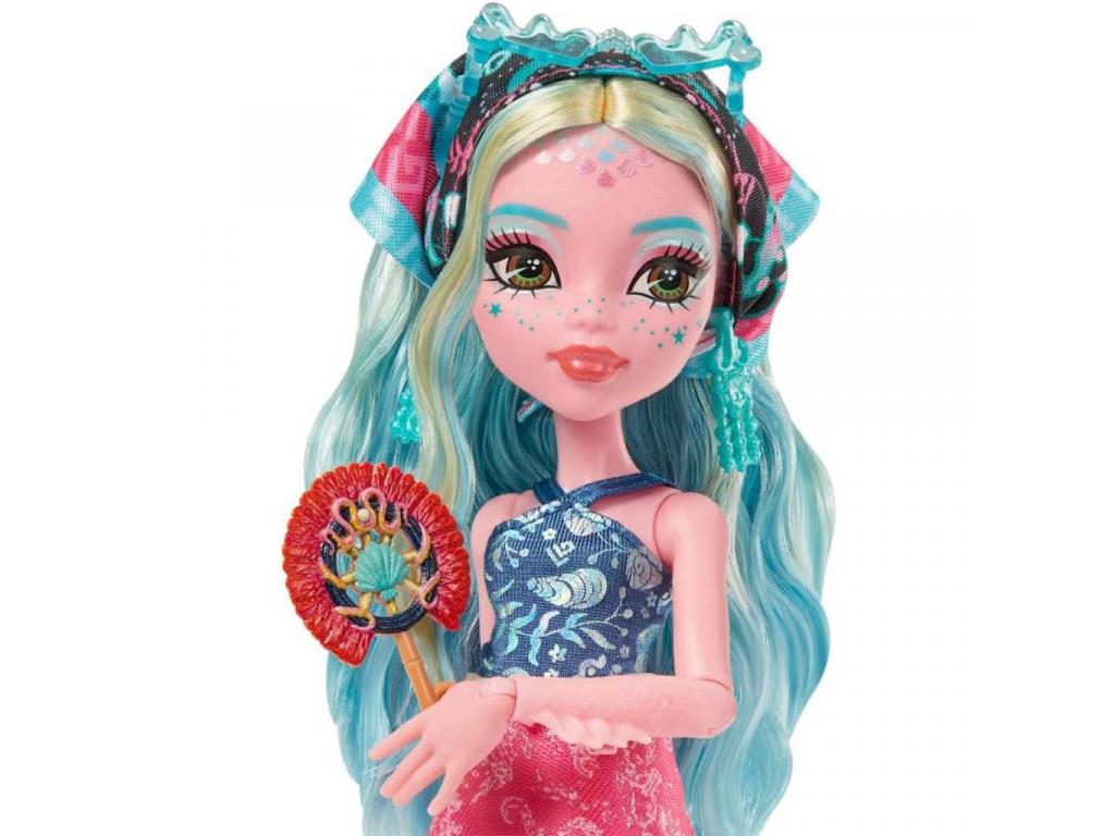 Lagoona Blue baba egyedi, tengeri szörny ihlette megjelenése azonnal magával ragad: rózsaszínes bőrtónus, hosszú, kékes-zöld haj, aprólékosan kidolgozott smink és részletgazdag öltözék jellemzi. Ruhája és kiegészítői a tenger világát idézik, miközben modern, Monster High stílusban jelennek meg. A csomag számos divatos kiegészítőt tartalmaz, amelyekkel a baba megjelenése variálható, így minden játékalkalommal új look alkotható.