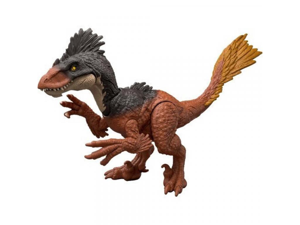 Az Achillobator különleges megjelenését a madárszerű testfelépítés, az erős hátsó lábak, a hosszú, tollas farok és az éles karmok teszik igazán félelmetessé. A figura részletgazdag textúrája, a természetes barna és fekete árnyalatok, valamint a hangsúlyos fejforma mind hozzájárulnak ahhoz, hogy a dinoszaurusz igazán valósághű legyen. A masszív kialakításnak köszönhetően strapabíró, így a legvadabb csaták során is bírja a játékot.