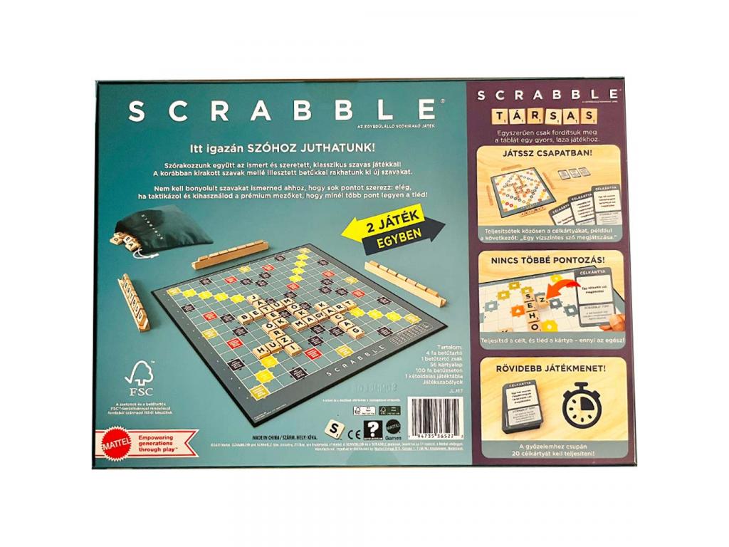 A Fa Scrabble Original és Társas 2az1-ben - Mattel leírása: