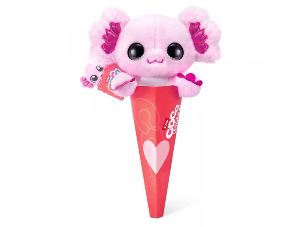 Megérkeztek a ZURU Coco Cones Valentine kisállatok a világ legcukibb, szívecskés tölcsérben érkező plüssbarátai! Albert, a rózsaszín axolotl különlegesen puha, ölelni való plüssfigura, aki a hatalmas csillogó szemeivel és mosolygós pofijával garantáltan azonnal elrabolja a szíved.
