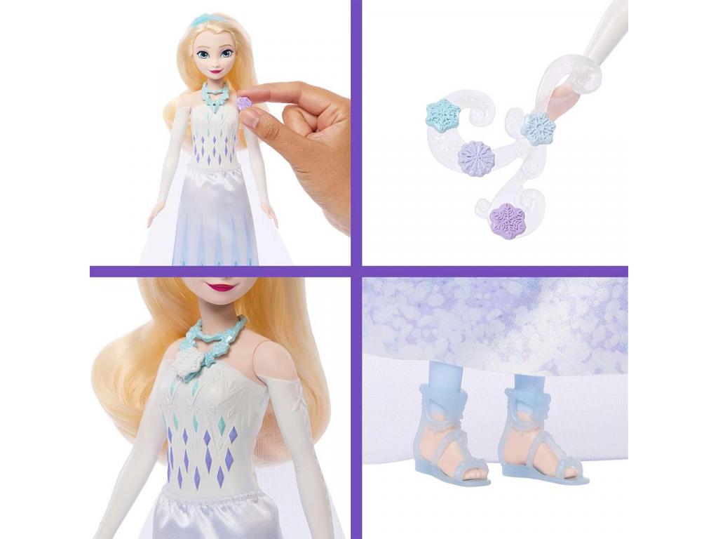 A csomagolás egy látványos, csillogó jégkristályt formázó tartó, amely már önmagában is Elza jeges varázsát idézi. A kinyitás során összesen 8 meglepetés várja a gyerekeket: apró kiegészítők, ékszerek és részletek, amelyekkel Elza megjelenése még különlegesebbé tehető. A meglepetések között találhatóak hópehely mintás díszek, ékszerek és egy gyűrű is, amelyet a gyerekek maguk is viselhetnek, így a játék személyes élménnyé válik.