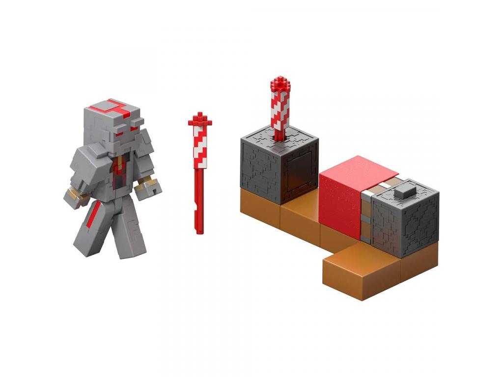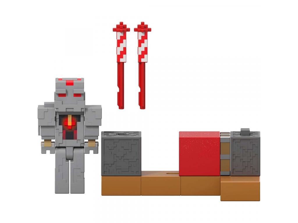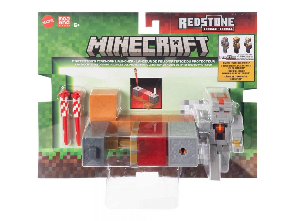 A szett központi eleme a Protector (Védelmező) figura, amely részletgazdag kidolgozásával és jellegzetes megjelenésével azonnal felismerhető a játékból. A hozzá tartozó tűzijáték-indító mechanizmus lehetővé teszi, hogy a gyerekek újrajátsszák a Minecraft világában megszokott redstone-alapú trükköket és jeleneteket. A készletben található elemek szabadon variálhatók, így a pályarészletek és a figurák többféleképpen rendezhetők el.