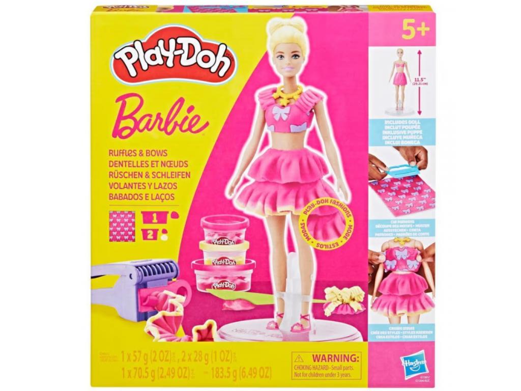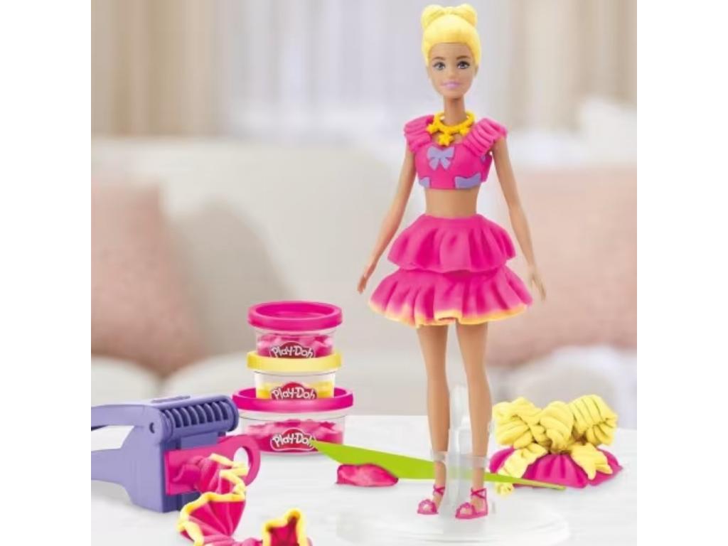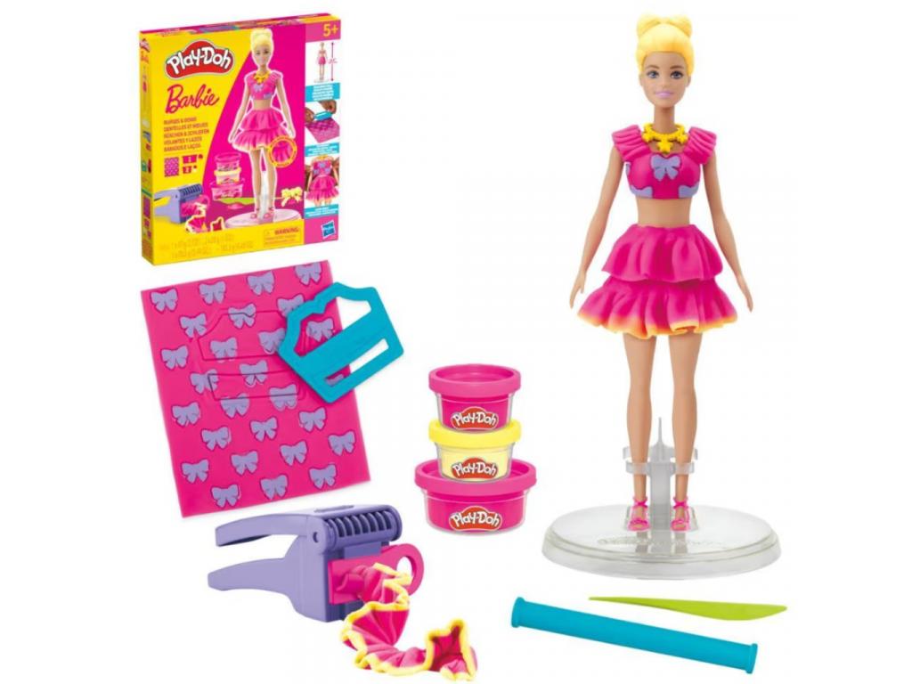 Play-Doh: Barbie fodrok és masnik gyurmaszett kreatív divattervezős készlet, ahol a gyerekek saját Play-Doh ruhakölteményeket alkothatnak Barbie számára. A szett középpontjában a fodrok és masnik készítésére szolgáló divatprés és mintalap áll: a gyurma könnyedén formázható, így percek alatt születhetnek új szoknyák, felsők és díszítőelemek. A játék egyszerre hozza a szerepjáték örömét és a kézműves alkotás élményét, miközben a kicsik szabadon variálhatják a színeket, rétegeket és mintákat. Ideális választás minden Barbie-rajongónak, aki szeret alkotni és újra meg újra átöltöztetni kedvenc babáját saját tervezésű Play-Doh ruhákba.