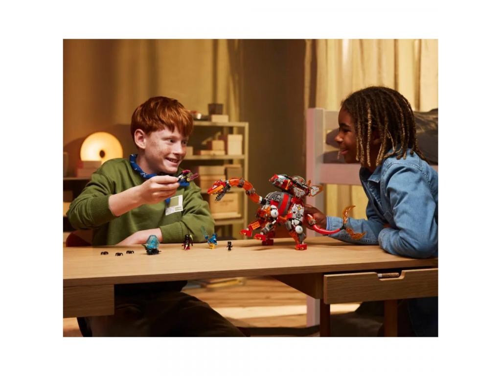 2 AZ 1BEN ÉPÍTÉSI LEHETŐSÉGEK A gyerekek választhatnak, hogy egy kétfarkú, lávából született brontosaurust építenek meg, vagy egy lángoló bunkófarkú, páncélos stegosaurust. A biztonság