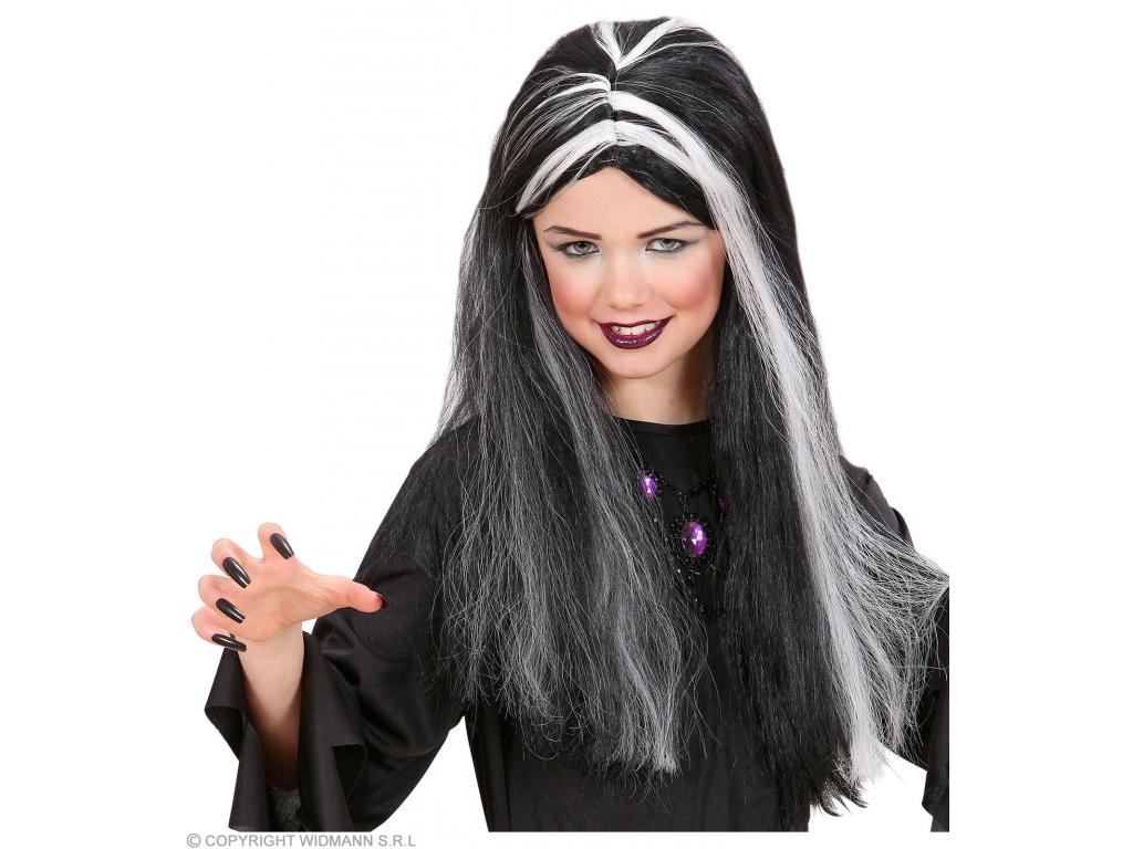 A Sötétben világító boszorkány paróka leírása: Ijesztő, fekete paróka, sötétben világító-fluoreszkáló fehér tincsekkel, tökéletes választás a boszorkány jelmezekhez. Anyaga: poliészter. A jelmez kiegészítő univerzális méretű, így bármely gyermekjelmezhez használható 3 éves kortól. A termék csak a parókát tartalmazza!
