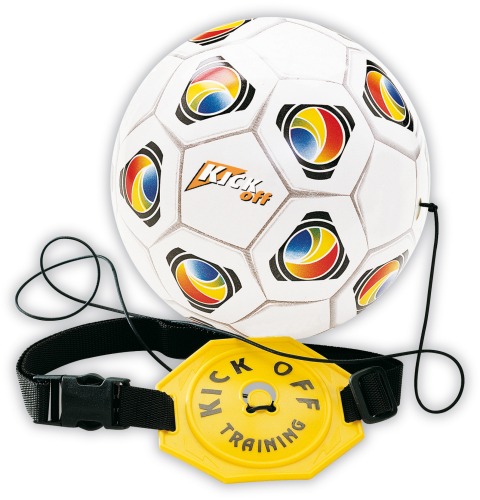 A Kick off labda leírása: Az övet fel ell csatolnunk, ezáltal ha belerugunk a labdába, a gumi visszarántja, s újra te jössz. Majdnem olyan, mintha valaki mindig visszarúgná a labdát neked. Ezért ne legyél rá mérges, mert ha erősebbet rugsz, a labda is sokkal gyorsabban repül vissza hozzád. Ideális gyakorolni egyedül .A Kick off labda 5 éves kortól ajánlott fiúknak