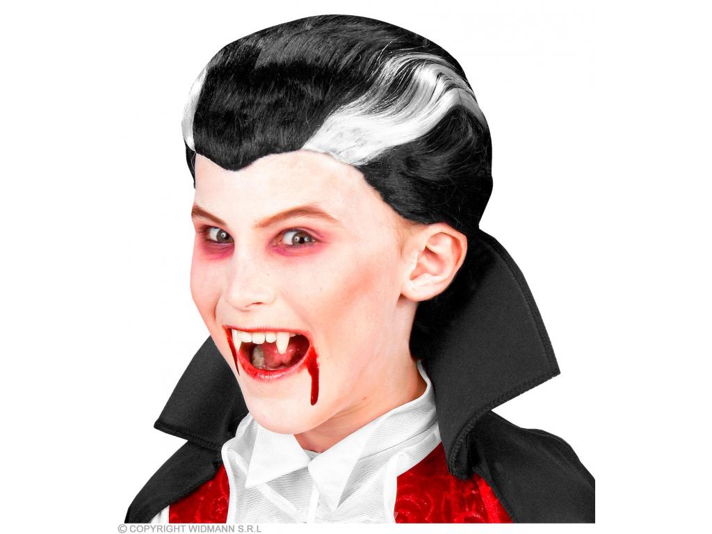 A Drakula paróka - univerzális méret leírása: Ijesztő, fekete paróka fehér tincsekkel, tökéletes választás a drakula jelmezekhez. A jelmez kiegészítő univerzális méretű, így bármely gyermekjelmezhez használható. A termék csak a parókát tartalmazza!