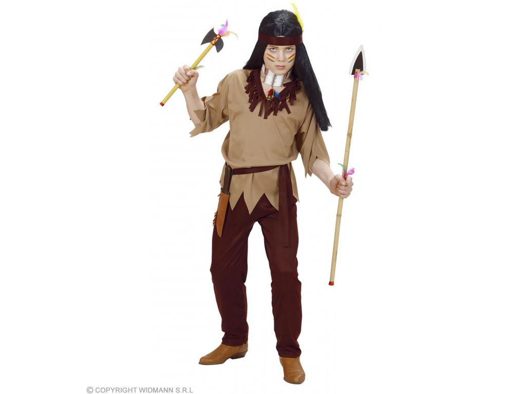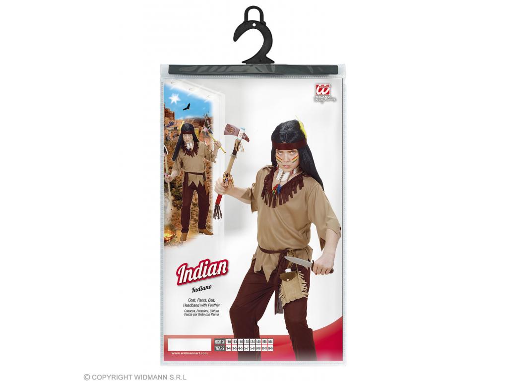 Az Indián harcos fiú jelmez leírása: Barna színu, rojtos indián fiú jelmez. A készlet a kabátot, a nadrágot, az övet és a fejpántot tartalmazza.