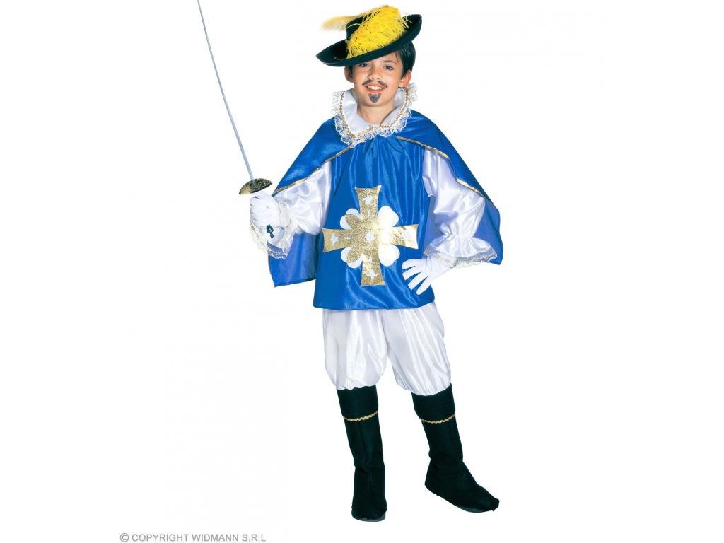 Kék és fehér színű, aranyszínű kereszttel díszített testor jelmez.íbr>Tartozékok: Ing rávart kabát résszel, nadrág, csizma burkolatok, palást