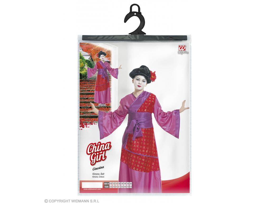 A Kinai lány jelmez leírása: Lila, kínai mintákkal díszített jelmez. A készlet a köpönyeget és az övet tartalmazza.