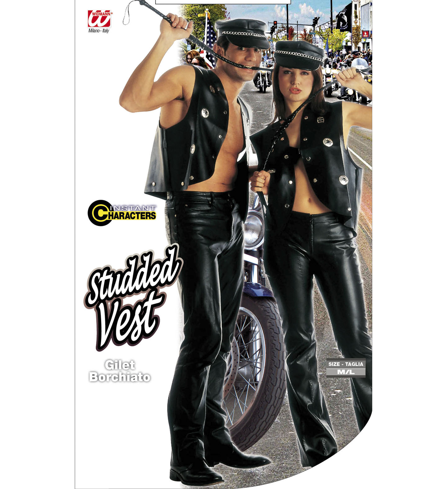 Szegecsekkel kivert férfi fekete mellény szép díszítésekkel.