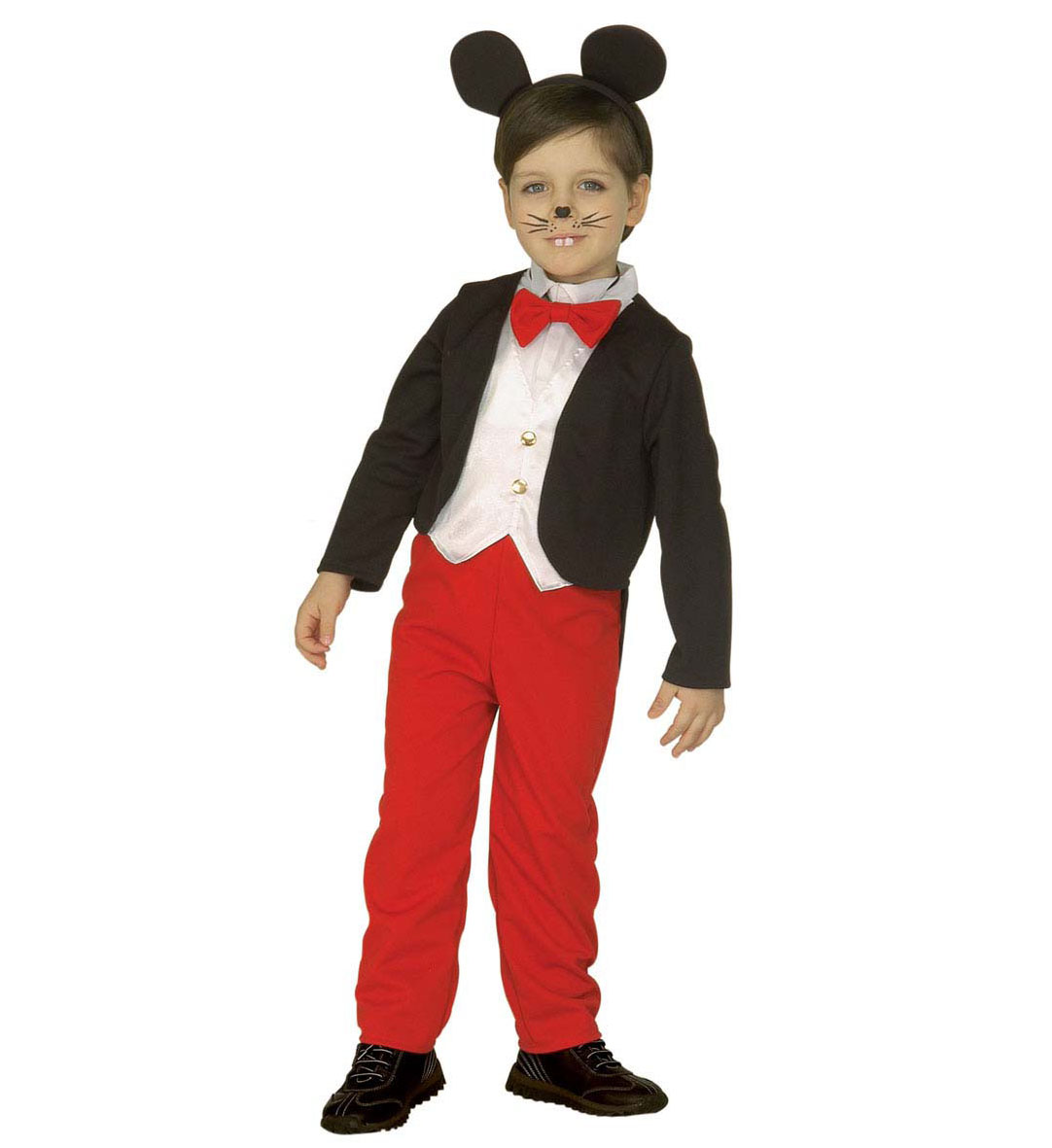 Mikiegér jelmez elegáns kiadásban! A készletben nadrág, kabát, ing, csokornyakkendo és egérfüleket formázó sapka található.