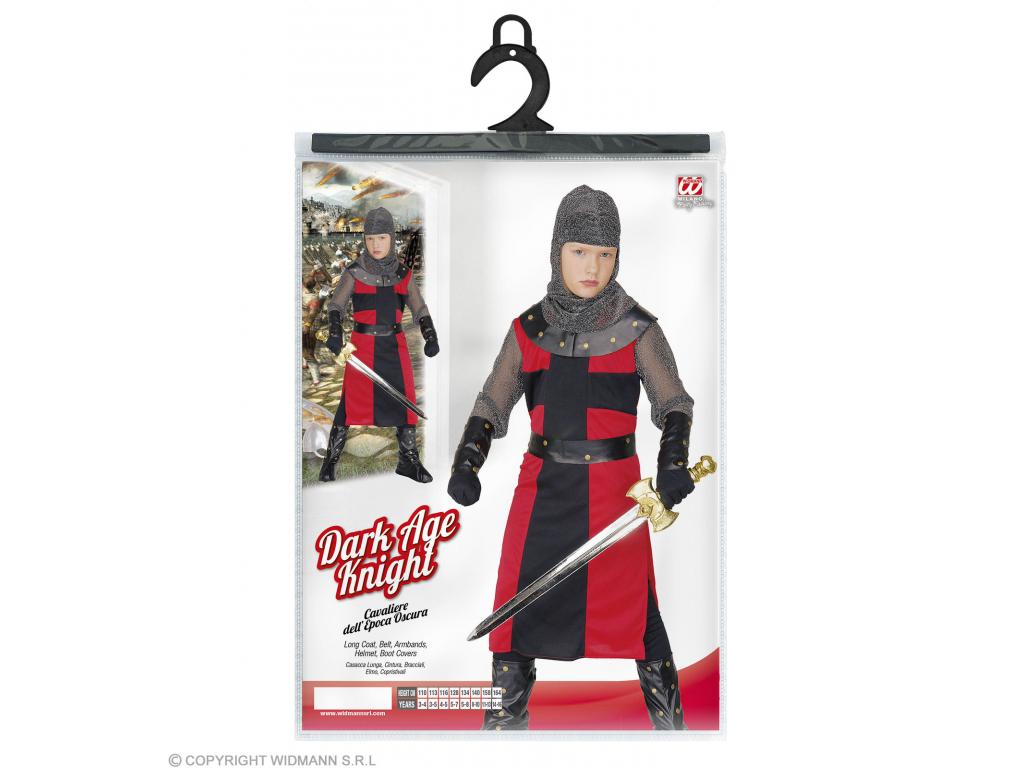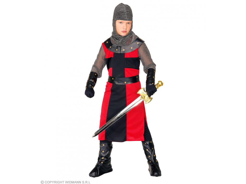 A Keresztes lovag fiú jelmez leírása: Vörös alapszínu, fekete kereszttel díszített lovagi jelmez.