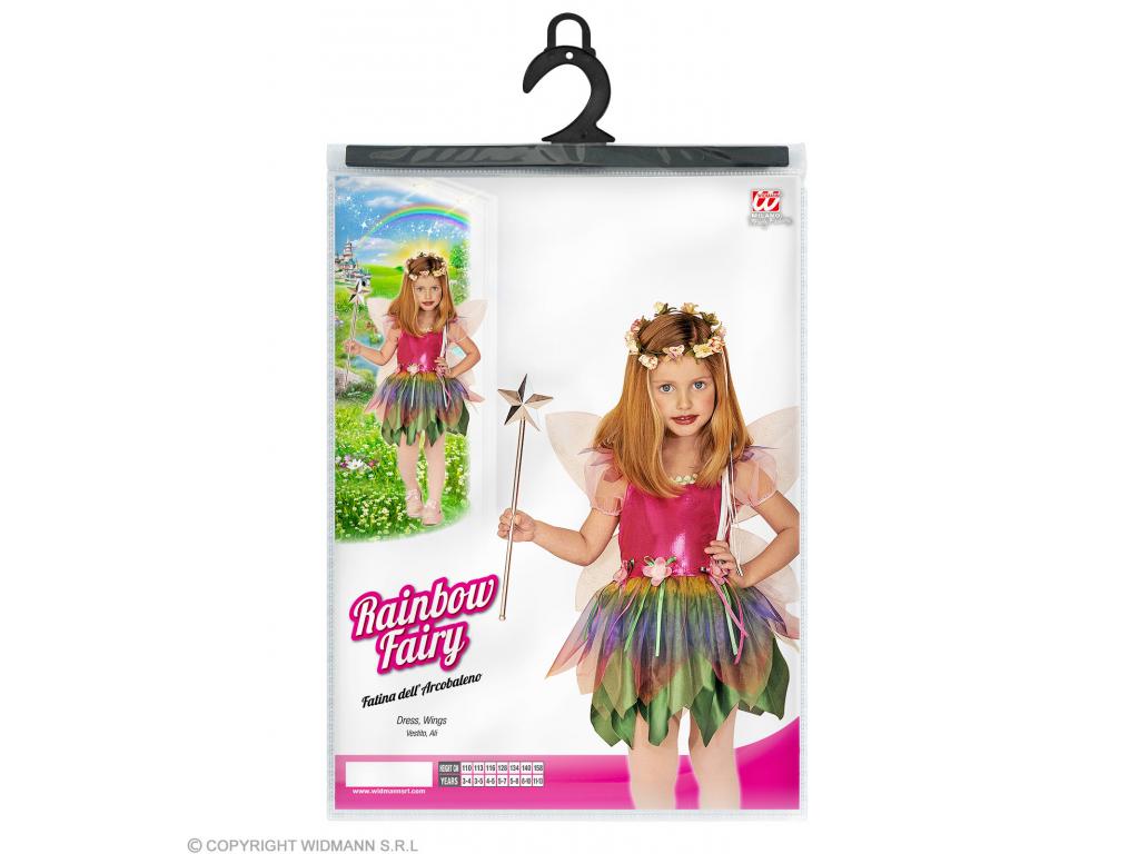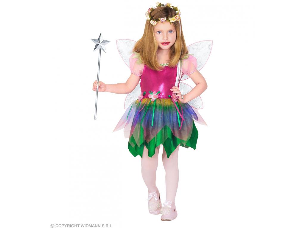 A Szivárvány tündér lány jelmez leírása: Aranyos tündér jelmez rózsaszín felsovel és zöldes szoknyával.