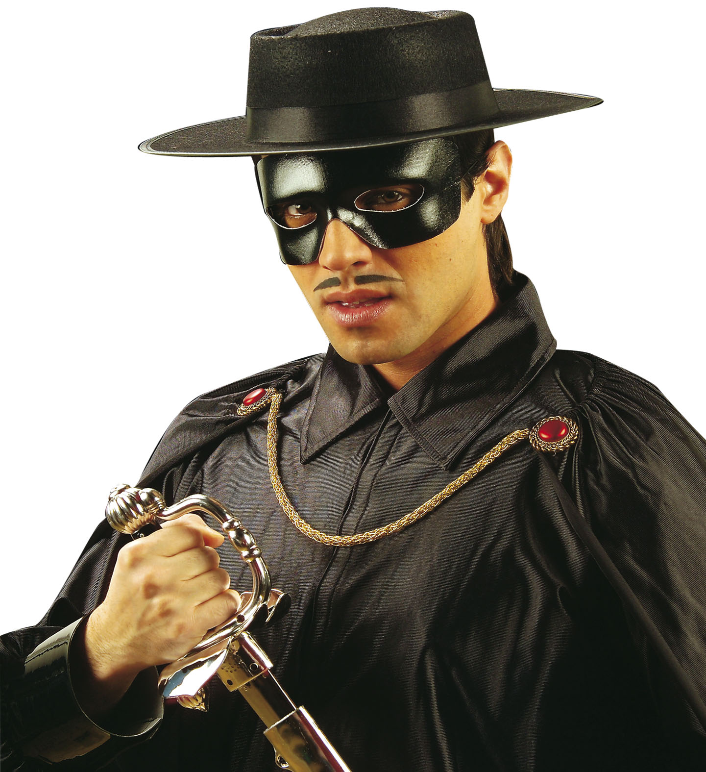 A Zorro / Cowboy kalap leírása: Zorro vagy cowboy jelmezekhez is jól használható kalap, fekete színű, filcből (Zorro villám jel nélkül), fényes fekete szalaggal díszítve. Jelmez-kiegészítőként vagy önmagában is viselhető. Jelmez-kiegészítő, egységes, univerzális felnőtt méretű, így bárki számára kényelmes viselet lehet. Más kiegészítőt, jelmezt nem tartalmaz.