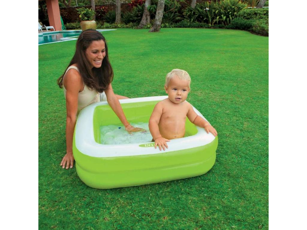 A Bébi medence 85 x 85 x 23 cm leírása: Gondtalan, vidám, és biztonságos lubickolást nyújt a Play Box Pool felfújható bébi medence. Mérete: 85 x 85 cm, magassága: 23 cm. A medence alja is felfújható. 18 cm-es vízmélységig feltöltve a szükséges vízmennyiség: 57 liter. A medence 0,25 mm vastagságú anyagból készült (ftalát-mentes). Már 1 éves kortól ajánlott!Véletlenszerűen szállítjuk a színt. A termék csak szülői felügyelet mellett használható!