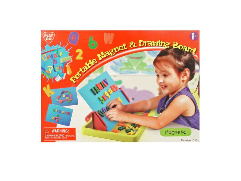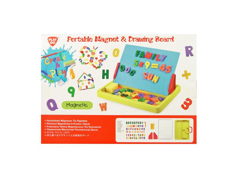 Összecsukható, műanyag betűkkel és számokkal kiegészített rajztábla. A rajztáblára A4-es lapokat tudsz befogatni, de magára a rajztábla felületére is tudsz filctollal rajzolni, amit a mellékelt szivaccsal tudsz letörölni a tábla felületéről. Méretek: 35 x 25 x 3 cm.