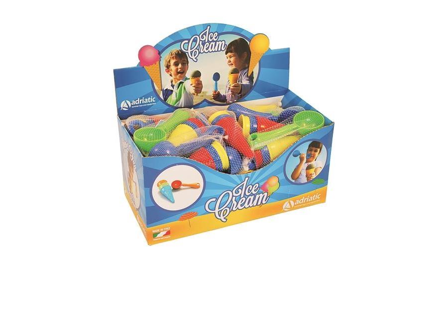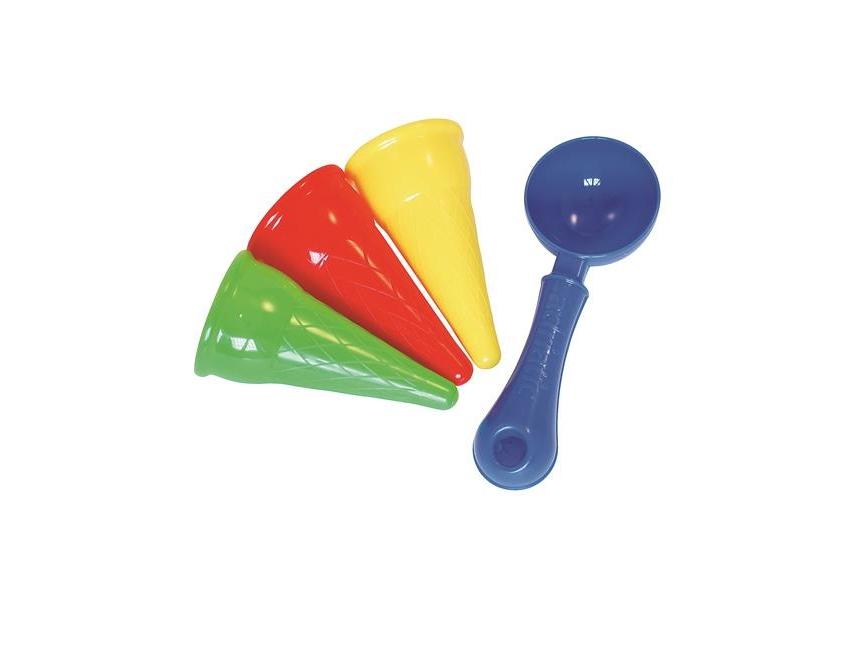 Ha itt a nyár, mindenki sorban áll a fagyisnál! Formázz fagylalt gombócokat az adagolóval, és már mehetnek is a porciók a tölcsérekbe, ki hány gombócot, és milyen ízűt kér? Homokozóforma szett, hálóban. A szett 1 darab adagolót (18 cm) és 3 db tölcsért (6 cm-es) tartalmaz.
